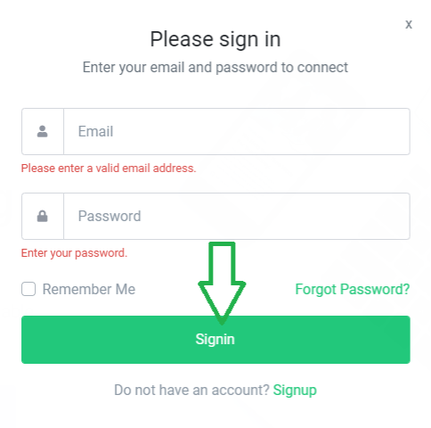 2. Enter your email and password in the appropriate boxes. Then click on “Sign in” button.